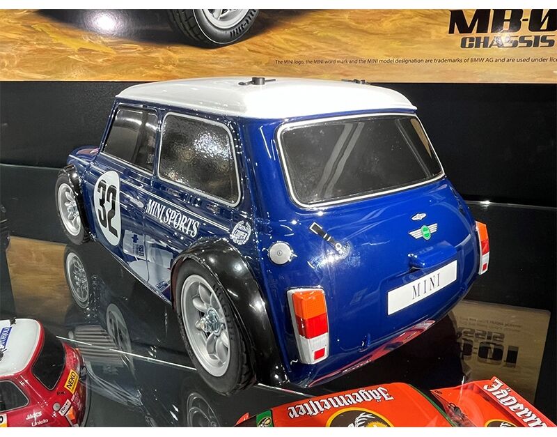 Der Tamiya Mini Cooper auf dem MB-01 Chassis ist ein beeindruckendes Modell, das die kompakte Sportlichkeit des legendären Mini perfekt widerspiegelt. Das MB-01 Chassis sorgt für hervorragende Agilität und Stabilität, sodass der Mini Cooper selbst auf engen und kurvigen Strecken exzellente Fahreigenschaften bietet.