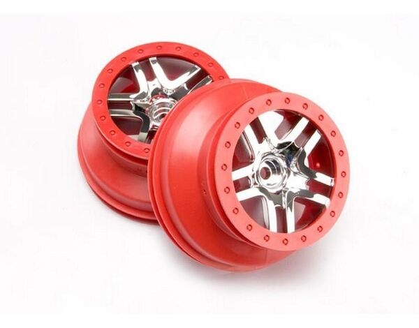 5876A Traxxas Wheels SCT Split-Spoke Chrome Red beadlock style dual profile (2.2 outer 3.0 Inner) (2WD Front) (2)