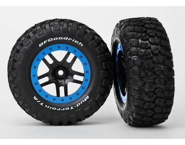 5885A Traxxas Tire & wheel assy glued (SCT Split-Spoke black blue beadl