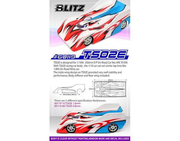6011907 BLITZ TS02E 1/10 200mm Karosserie 0.7mm