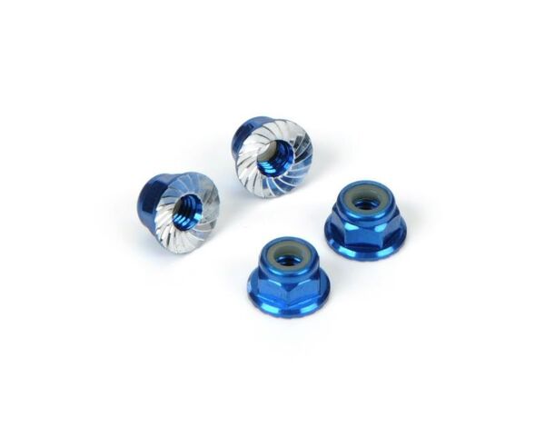 This is a Pack of 4mm Serrated Wheel Lock Nuts for Cars and Trucks with 4mm Axles. Pro-Line wants your wheels to stay where they belong – On Your Car! Pro-Line’s new 4mm Wheel Nuts feature Dual Protection against the Dreaded “Wheel Loss” found at RC tracks around the world. These Pro-Line Blue Anodized Aluminum Nuts have deep serrations that dig into the wheel and provide a secure hold against the rigors of Racing and Bashing. The second layer of protection delivered by Pro-Line’s new Serrated Nuts is the Nylon Lock Ring that prevents the nuts from loosening due to vibration and centrifugal effects. Get the Security and Style afforded by Pro-Line’s new 4mm Serrated Lock Nuts today!
