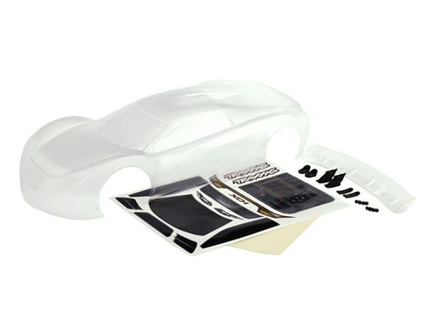 6413 Traxxas Karo XO-1 klar unlackiert + Flügel + Zubehör + Decals