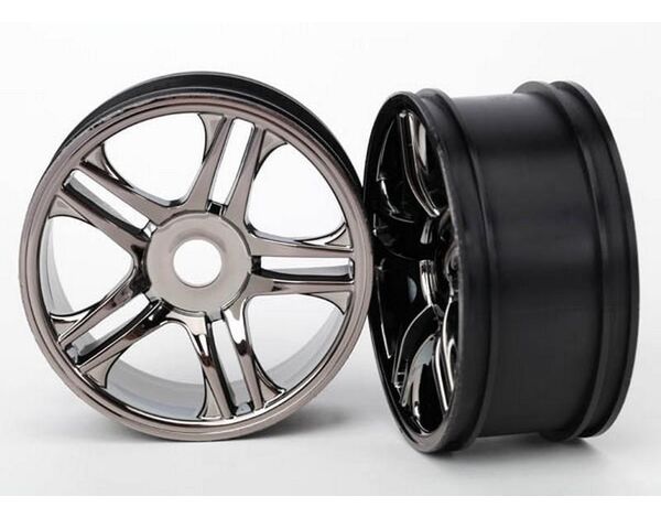 6476 Traxxas Wheels, split-spoke (black chrome) (rear) (2)