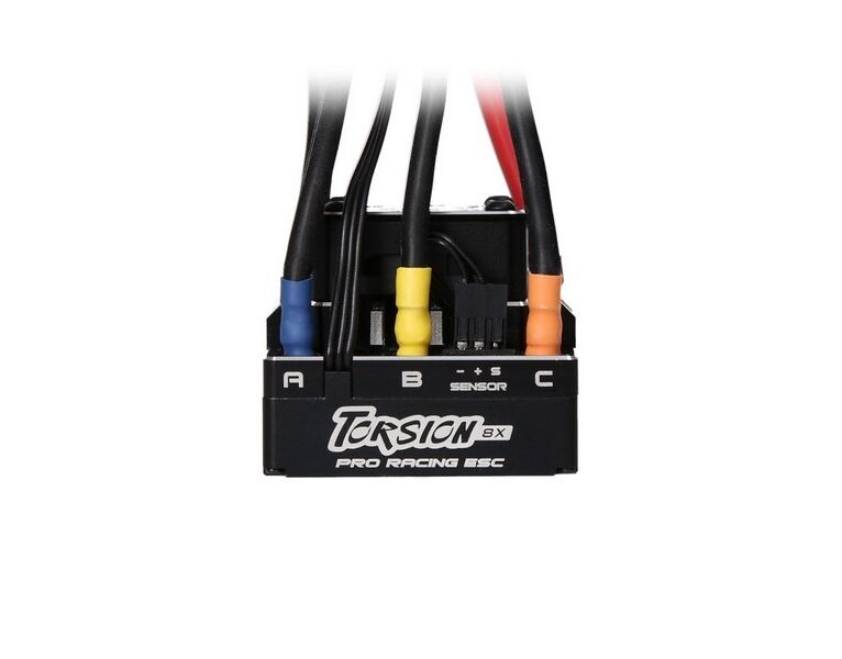 Entwickelt für 1:8 Buggy-, Truggy- und On-Road-Wettbewerbe, hat das Team Orion Racing den Torsion 8X ESC mit einer "No Compromise"-Philosophie entwickelt. Unsere Teamfahrer haben den Torsion 8X im Wettbewerb auf Rennstrecken in den USA und Europa getestet, so dass er leistungserprobt und perfekt für höchste Ansprüche in allen 1:8er Klassen geeignet ist. Der Torsion 8X ist ein vielseitiger und leistungsstarker Regler mit einer großen Auswahl an Präzisionseinstellungen, einem sanften Gas- und Bremsgefühl und modernster Hardware. Er wird mit vorprogrammierten Einstellungen geliefert, die für die meisten Fahrzeugtypen und Rennbedingungen geeignet sind.