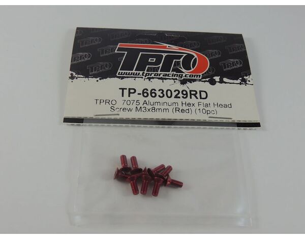 663029RD TPRO 7075 Aluminum Innensechskant Linsenkopf M3x8 (Rot) (10pc)