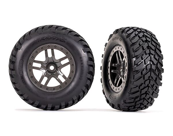 Tires & wheels, assembled, glued (SCT Split-Spoke gray beadlock style wheels, SCT off-road racing tires, foam inserts) (2) (4WD f/r, 2WD rear) (TSM rated)