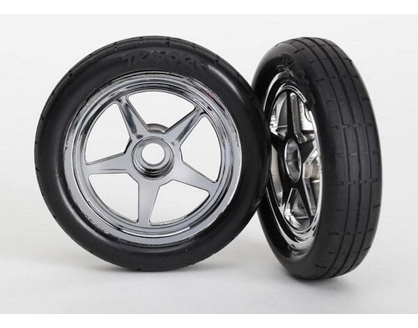 6975 Traxxas Tires & wheels assembled glued (5-spoke chrome wheels tire Reifen Räder Komplettrad