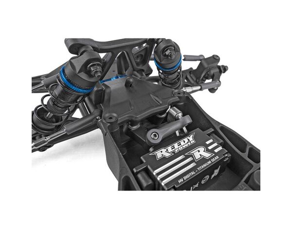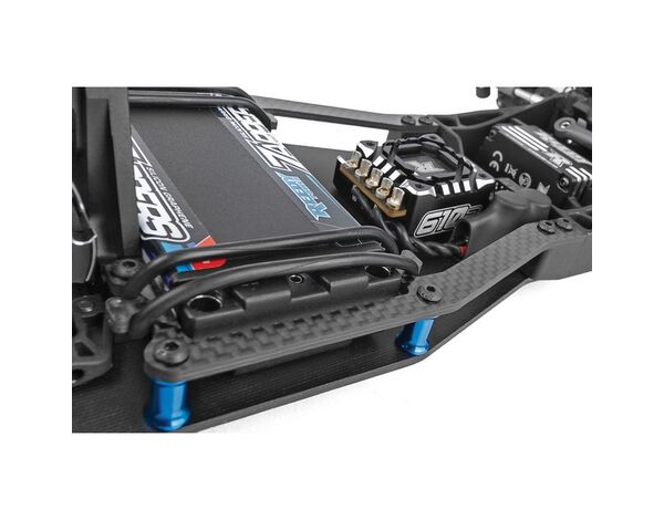 Neues G10-Glasfaser-Chassis mit niedrigem Schwerpunkt in der Fahrzeugmitte und aktualisierten O-Ring-Akkuhalterungen für 2S LiPo "Shorty"-Akkus