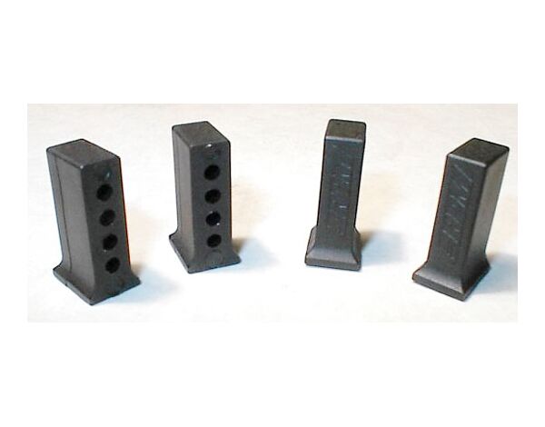 RPM servo mounting posts have several hole positions available to accommodate various sized servos and are trimmed down to reduce bulk, yet they mount very firmly for reduced flex. Packaged in pairs with mounting screws included.