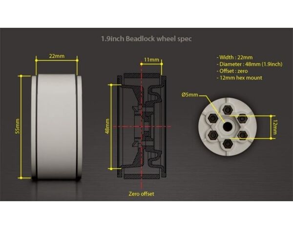 These 'steelie' type wheels provide an awesome scale look for your 1.9 class rig.