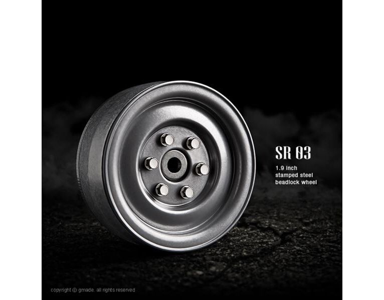Stylish rock crawler beadlock wheel from Gmade. Available in 4 colors - Matt black, Gloss white, Semigloss silver and Uncoated steel