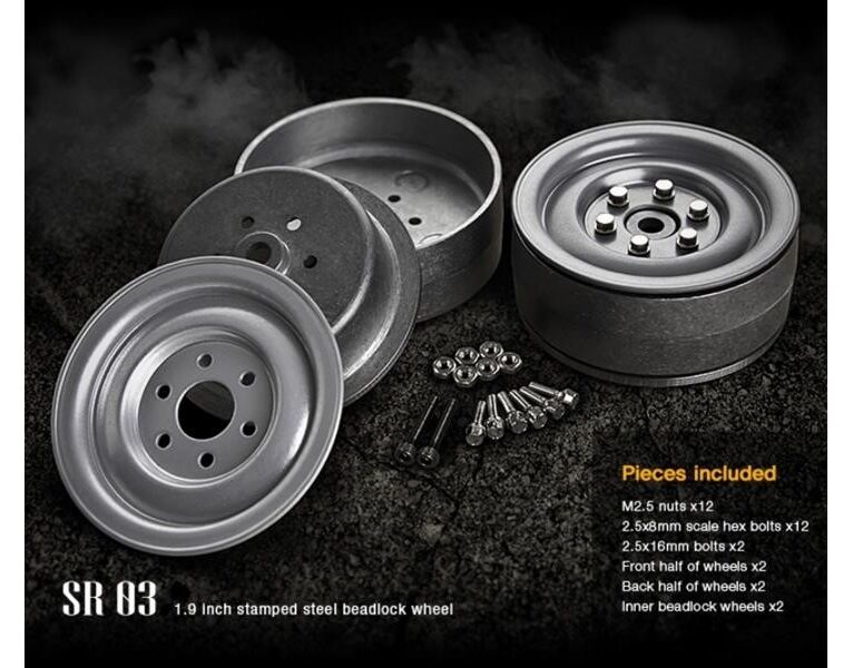 GM70182 Gmade 1.9 SR03 Beadlock Wheels (Semigloss silver) (2)