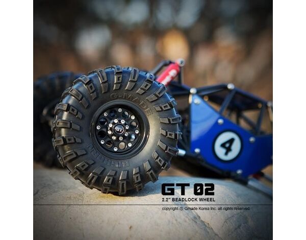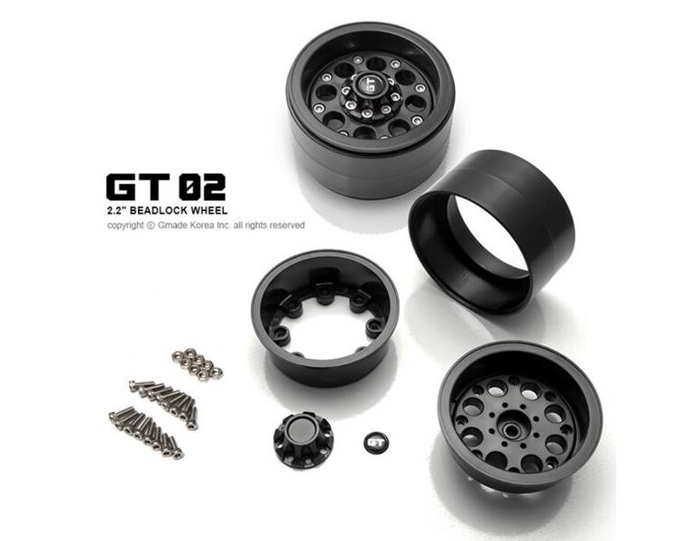 These are designed to fit most popular 2.2” tires and are a true internal beadlock design with no gluing required. The GT02's come in black and have a scale realistic design to look good out on the trail. The Gmade GT02s fit on 12mm hexes and will be sold in pairs.
