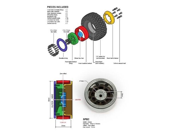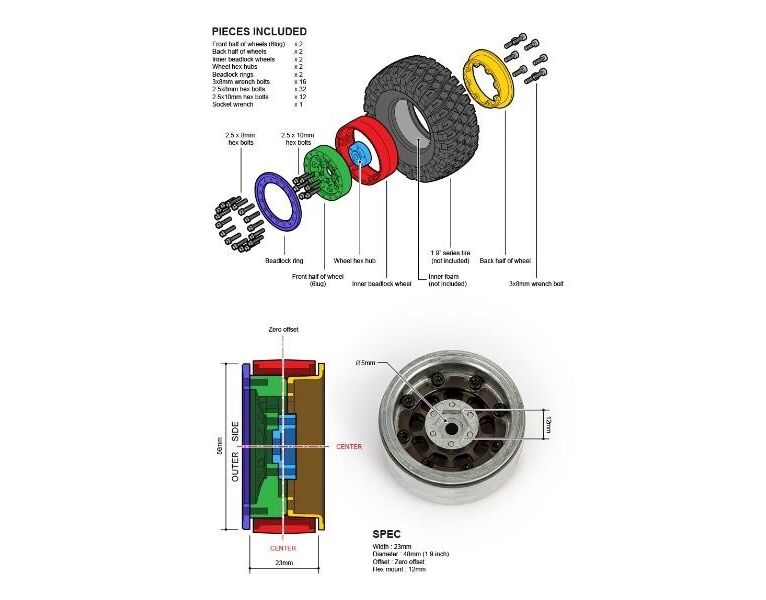 GM70397 Gmade 1.9 AR04 6 Lug Aluminum Beadlock Wheels (2)