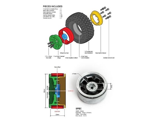 GM70424 Gmade 1.9 AR05 5 Lug Aluminum Beadlock Wheels (2)