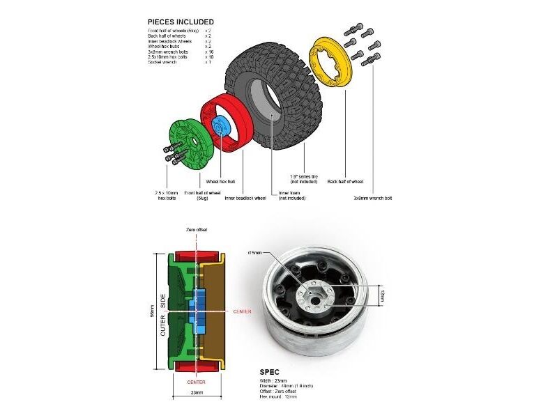 70424 Gmade 1.9 AR05 5 Lug Alu Beadlock Wheels (2)