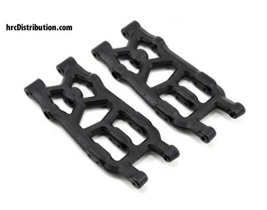 RPM A-arms for the Axial EXO Terra Buggy are designed with unique features found only on RPM A-arms. We use 30 degree leading and trailing edges, which help the vehicle transition up and over tall objects instead of plowing into or through them. Our oversized bosses for the hinge pin, shock mount and screws help support high breakage areas. Key oversized areas can be larger in diameter by at least 10% and wider by as much as 65%! RPM engineers tweaked the shock mount angle on our rear A-arms to eliminate the bind on the lower shock pivot ball at full suspension droop found with stock a-arms. A full set of front and rear A-arms from RPM weigh in less than stock arms as well, shedding unsprung weight in the process of adding some much needed muscle. A final, critical touch eliminates much of the slop from the suspension and steering systems. Hinge pin hole diameters are now .118” (or 3mm), cutting nearly .004” (.1mm) of slop from each hinge pin!