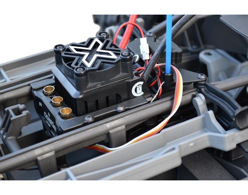 Other aftermarket ESC plates require double-sided tape to retain your valuable Castle Mamba X 8S ESC. Our ESC Cage for the Traxxas X-Maxx provides a solid, positive mount, locking your valuable ESC in place. Dual clamp plates prevent a massive slam from ejecting the ESC. Additionally, our cage allows the ESC to be run with or without a fan. It encases the ESC body only, leaving the fan free for easy removal for wet running. Furthermore, we left the front, rear and sides of the ESC open to allow critical air movement. This helps keep the ESC cool. An encased on / off switch mount and antenna relocation plate are also included.
