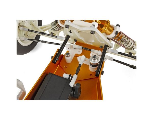 Team Associated-Präzisionsstoßdämpfer der neuesten Generation aus goldeloxierter Legierung für den Rennsport.