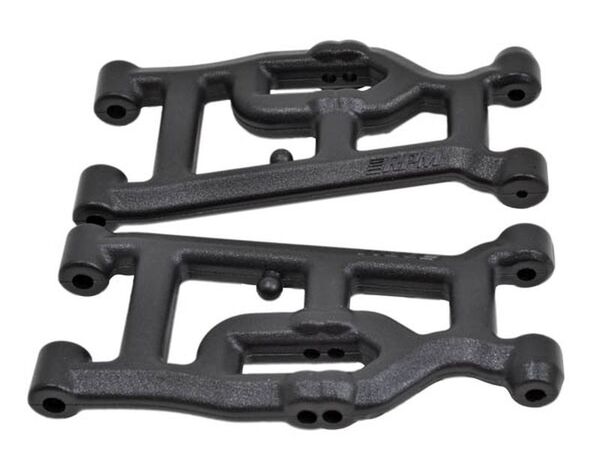 73502 RPM Querlenker vorn schwarz – replaces stock Associated 92025 – lighter than stock – reduced slop at the hinge pins for more accurate suspension settings RPM A-arms for the B64 & B64D were designed to solve critical issues reported to us by our customers. With stock A-arms, the amount of slop at the hinge-pins can cause your suspension settings to wander (we found as much as 0.003” or .076mm of clearance in the hinge pin holes of a stock set of new A-arms). Our hinge-pin holes are held to extremely strict tolerances, with no more than 0.0005” to 0.001” (.013 to .025mm) of clearance, an improvement of nearly 300%! Durability is also key to staying on-track! RPM customers have repeatedly reported that stock A-arms break easily. Whether bashing or racing, RPM A-arms are the toughest A-arms on the market so a rough landing or a hit from another competitor won’t take you out of the race! We also use in-line screws to retain the outer hinge pins. Elimination of that e
