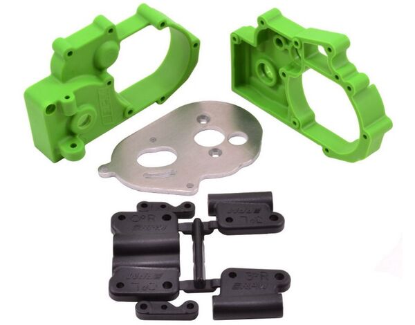 73614 RPM Racing Products Tuning Parts Green Gearbox Housing and Rear Mounts for Traxxas 2WD Vehicles Unser Tuning Tipp: RPM Teile sind aus nahezu unzerbrechlichem Nylon Kunstsoff für ungetrübten Fahrspass und ersetzen 1:1 das Originalteil – passt für: Traxxas Slash 2WD, Bandit, electric Rustler & electric Stampede 2WD – hybrid nylon / aluminum for a lightweight, yet strong gearbox – intuitive mounting system allows individual removal of the gearbox or A-arm mounts – available in Black, Green & Blue – matching Gear Cover also available – replacement Rear Mounts available The RPM Hybrid Gearbox Housing and Rear Mounts for Traxxas 2WD vehicles is designed to solve a multitude of issues with stock and other aftermarket transmission housings. Our gearbox housing and mounts are a blend of aluminum and molded nylon parts for the perfect combination of strength, durability and heat dissipation. Check out this awesome list of included features: Aluminum Motor Plate: Ma