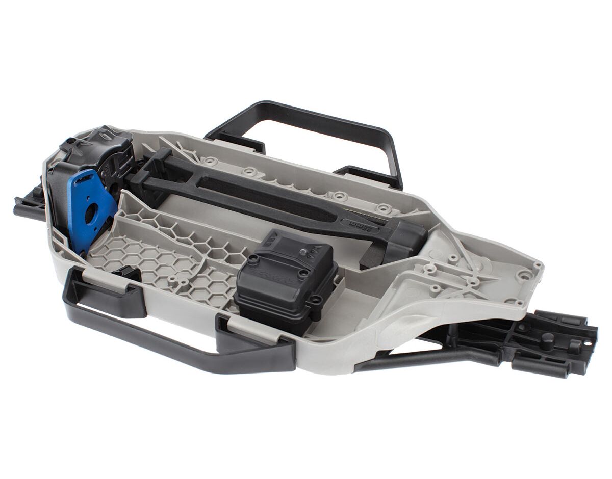 The Low-CG chassis holds the battery* and electronics* as deep in the chassis as possible to position weight low in the chassis. To prevent flex under load, the chassis is reinforced by integrated ribs that form a ridged triangulated structure. Underneath, the chassis is ultra-smooth to reduce drag and prevent snags whether you're blasting through whoops on the track or blazing trails in your backyard. The low-CG design dramatically increases corner speed and stability no matter where you drive.