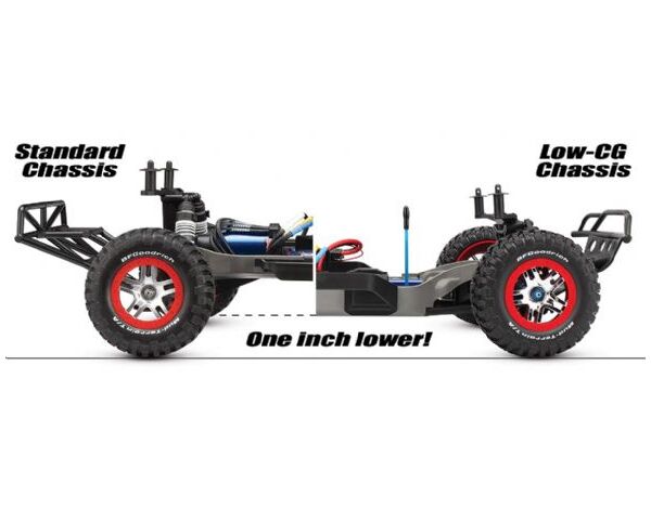 Performance-proven by the Slash 4X4 Ultimate and 1/10 Rally, the Traxxas Low-CG chassis is now available as a complete conversion kit for Slash 4X4. No matter where you want to race, on the track or off, you will experience superior handling and faster corner speed. The conversion kit includes all the parts and hardware required to convert one Slash 4X4 to the Low-CG configuration.