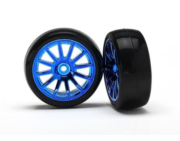 7573R Traxxas LaTrax 12-Sp Blue Slick Tires & Wheels (2)