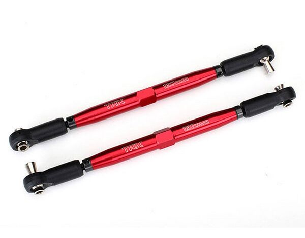 Toe links, X-Maxx (TUBES red-anodized, 7075-T6 aluminum, stronger than titanium) (157mm) (2)/ rod ends, assembled with steel hollow balls (4)/ aluminum wrench, 10mm (1)