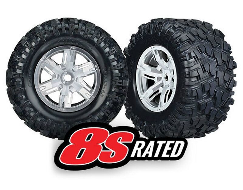 Tires & wheels, assembled, glued (X-Maxx satin chrome wheels, Maxx AT tires, foam inserts) (left & right) (2)