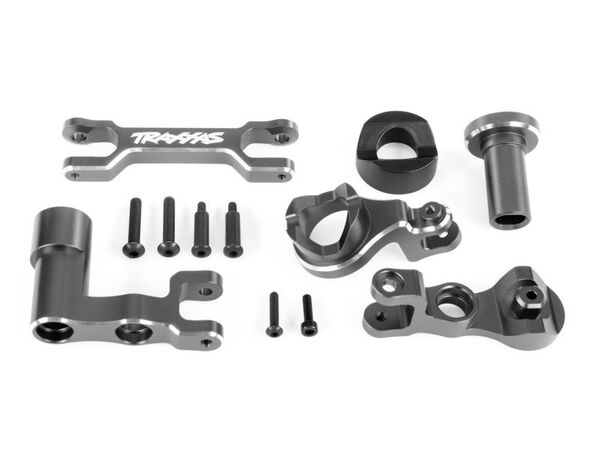 Aluminum Bellcrank AssemblyEnhance the steering precision, strength, and looks of your XRT® with this aluminum bellcrank steering assembly. Machined from tough 6061-T6 aluminum, these bellcranks add color and style to your machine. The brilliant hard-anodized finish allows the bellcranks to pivot precisely with sealed ball bearings for silky-smooth turning action. The set also includes aluminum supports, servo saver, double-shear drag link, upgraded tension spring, and mounting hardware. Add the 7747 aluminum servo horn for even greater strength and precision. Genuine Traxxas accessories are made by Traxxas, for Traxxas, to guarantee a perfect factory fit every time.