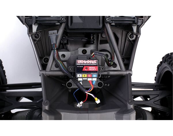Wiring is simple: Plug the main connector from the power amplifier into the power port on the Traxxas VXL-8s Electronic Speed Control, and then plug the individual lighting modules into the power amplifier. Switch between three manual lighting modes on the power amplifier (such as high beam and low beam), or use the Traxxas Link app and Wireless Module (#6511*) to control individual lights remotely and create custom lighting configurations. Of course, since it’s from Traxxas, this powerful, feature-rich system is rugged and fully waterproof for all of your exciting RC adventures.
