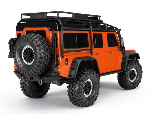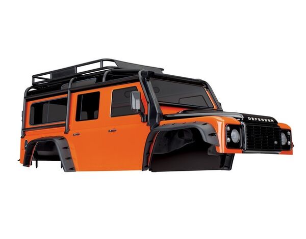 This special edition orange and black Defender body comes pre-cut, painted with applied decals, and ready to mount on the TRX-4 chassis (324mm). The body is fully assembled with a complement of highly detailed scale parts including Exocage, inner fenders, fuel canisters, snorkel, grill, and jack.