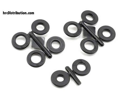 One of the weakest points on a Lexan body is where the body mounts to the chassis. The holes cut in the body for the body posts have a tendency to crack & fracture. This is the reason RPM designed these cool body savers. With their ideal two piece design, it allows one piece to slide through the bottom of the body while the second piece snaps into place from the top of the body. These body savers stay right where you put them, on the body, so you never have to worry about chasing them around! Improve the life of your body significantly with a set of these Body Saver Washers installed!