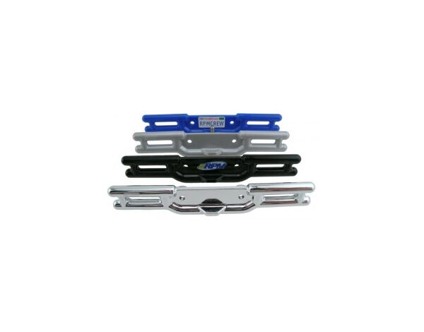 RPM provides the added protection the Revo needs with unbelievable strength and durability in our tubular front and rear bumpers. RPM bumpers for the Traxxas Revo are made from our bulletproof blend of nylons. RPM nylons are the best material for protecting your Revo since our materials are lightweight, inexpensive, and tougher than anything else available! We’ve re-engineered the front and rear bumpers to improve strength, especially around the screw holes, which eliminates potential weak points, and we’ve designed a recessed flat where with a little creativity, anyone can add in a customized, scale license plate. Additionally, our rear bumper has a flat area perfect for adding a ball stud for a faux ball hitch (see our FAQ page of our website for more information). Our colors are molded into each bumper so scratches and nicks won’t cut through to a different color underneath. In addition, our chrome bumpers are molded over our metallic silver bumper so scratches won’t show as easily as a stock bumper (where black is the base color). RPM bumpers carry our lifetime warranty against breakage and will hold up to the roughest of punishment.