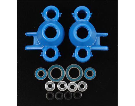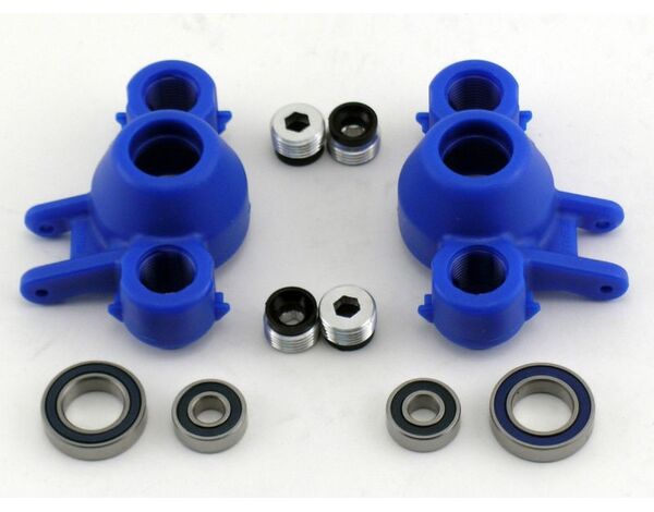 What’s Included: RPM Revo axle carriers are sold with 1 left and 1 right axle carrier, 2 outer 15mm bearings, 2 inner 21mm bearings, 4 aluminum setscrews, 4 Delrin bushing caps, and detailed instructions to help install them on your truck. TWO packages will be needed to complete one vehicle (unless used with the RPM True-Track Rear End Conversion, then one package is all that is needed).