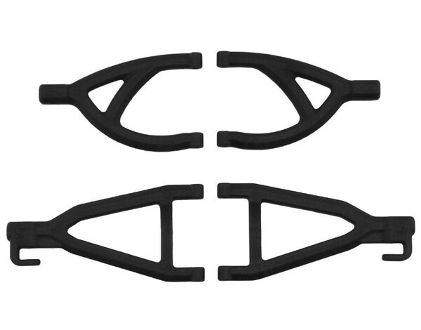 RPM rear suspension arms match the same design elements as our fronts using angled leading and trailing edges. By incorporating a 30-degree bevel in these areas, we reduce the chance of breaking suspension parts since the A-arms will naturally try to transition over objects instead of bluntly plowing into them.