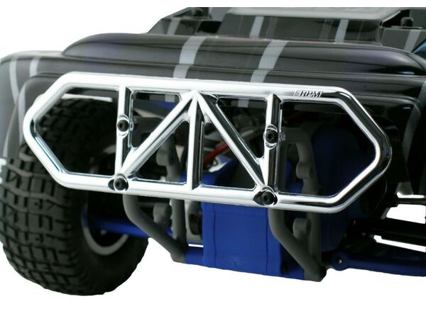 81003 RPM Racing Products Tuning Parts Chrome Rear Bumper for the Traxxas Slash 2WD Unser Tuning Tipp: RPM Teile sind aus nahezu unzerbrechlichem Nylon Kunstsoff für ungetrübten Fahrspass und ersetzen 1:1 das Originalteil passt für: Traxxas Slash 2WD After releasing our front bumper for the Traxxas Slash, we immediately started receiving customer requests for an RPM rear bumper. In typical RPM fashion, we don’t just make replacement parts; we make the best replacement parts possible! What sets the RPM rear bumper above all else? We started with our incredibly durable materials and created a bumper that is based off of current full-sized Short Course and Baja style rear bumpers. Full-sized rear bumpers are wide and flat and our scale version is exactly that, for the ultimate in rear-end protection. RPM rear bumpers will stop most rear impacts from affecting the truck in any negative way. Additionally, RPM rear bumpers for the Traxxas Slash weigh in at a full 9 grams (18%) light