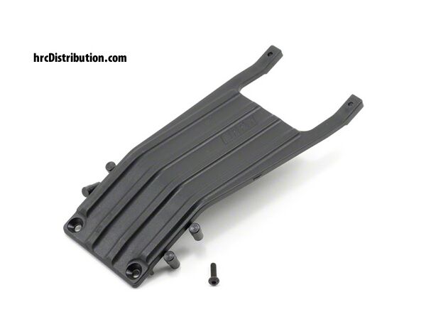 Our front skid plate also uses a triangulated chassis mounting system that uses a support post in the center of the skid plate to bolt up to a pre-existing hole in the stock Traxxas chassis. This third hole not only adds some serious strength and durability, it adds some much needed structural support to the bell cranks.