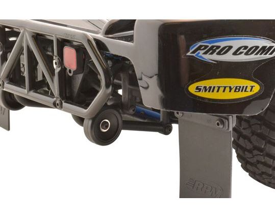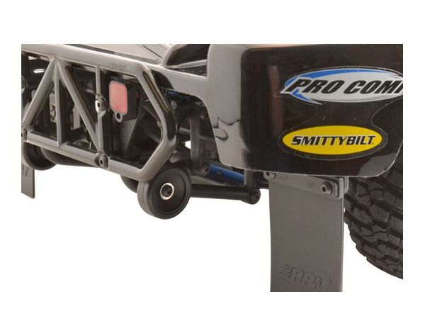 A serious issue with most currently available wheelie bars is the inability to use the truck as an off-road vehicle because most wheelie bars tend to stick out too far behind the truck. The RPM Low Visibility Wheelie Bar solves that problem! Since our wheelie bar and included wheels sits inside the protection of the rear bumper, they don’t stick out allowing the truck to function normally when rippin’ up the local track, yet still do their job when the occasional heavy finger pull yanks the front wheels off of the ground!