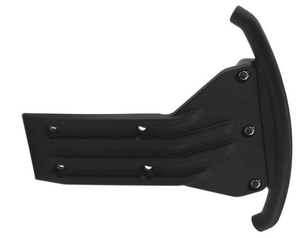 Our front bumper is a two-piece design, utilizing a skid plate and separate bumper that can be removed for racing. Each piece has specific design elements incorporated to dramatically improve the strength and durability of the HPI Baja 5B. The RPM skid plate is attached to the chassis with four 5mm screws, not two like the stock version, effectively cutting transferred impact energy in half, divided equally among those four screws. Our skid plate also has huge skid rails all along its lower section and is a major part of the impact-absorption system. It extends up, out and away from the chassis, creating a large curved section that acts as a buffer zone that rapidly dissipates impact energy by compressing during a hit, slowing and absorbing that energy without transferring it into the more fragile components of the vehicle. Once the impact force dissipates, the memory characteristics of our trademark blend of RPM nylons will return the bumper to its original position.