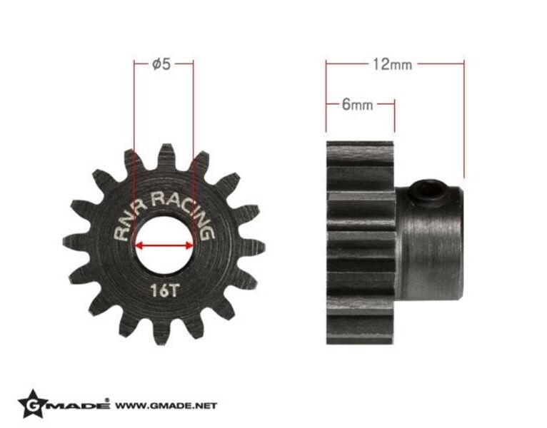 GM82716 Gmade MOD1 5mm Hardened Steel Pinion Gear 16T (1)