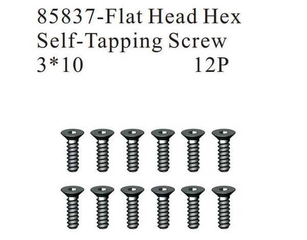 85837 HSP Flat Head Hex Self-Tapping Screws 3*10