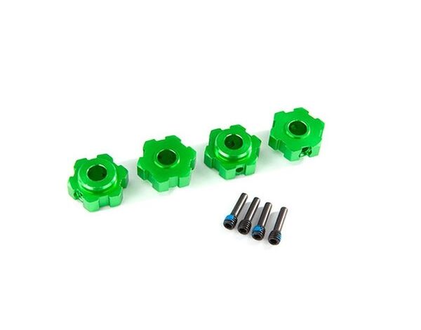 8956G Traxxas Wheel hubs, hex, aluminum (green-anodized) (4)/ 4x13mm screw pins (4)