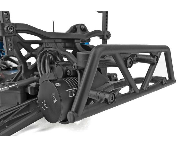Dank seines tiefen Schwerpunkts, 22 gummigedichteten Kugellagern, CVA-Antriebswellen hinten und großen Aluminium-Stoßdämpfern ist er sowohl auf Sand als auch auf Schotter oder Asphalt zu Hause. Ein abgedichtetes 2,6:1-Getriebe mit Slipperkupplung sowie verstellbare Karosseriehalter runden das Gesamtpaket ab.