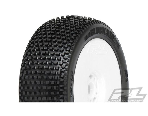 9039-233 ProLine Blockade S3 (Soft) verklebt auf V2 Felge weiss (2) 1 Paar 1/8 Buggy Kompletträder / Reifen mit 17mm Sechskant This is a pair of Pre-mounted Blockade S3 Tires. Pro-Line’s extremely popular Blockade tire in S3 compound is now available Pre-Mounted! Historic. Revolutionary. The Best. Just a few words that have been used to describe Pro-Line's Blockade tire. History was made the first time the Blockade touched the race track Winning the 2011 ROAR Fuel Off-Road Nationals by 2 laps! Now available in the S Series Compounds and mounted to Velocity Wheels! The Revolutionary tread design features large lugs for class leading tread life, perfectly balanced tread spacing for maximum forward bite and uniquely blended side tread that reduces the edginess found in other race tires. This tire will give your buggy qualifying speed with tread life capable of handling hour long A-Mains. Pro-Line's Blockade is a must-have 1:8 Buggy Race tire and will dominate your local track. Pro-Li