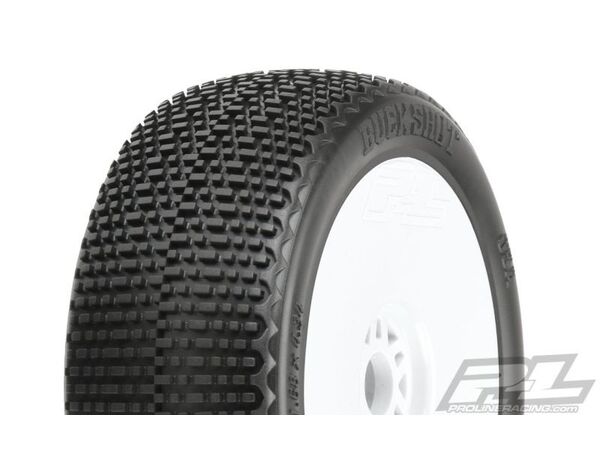 Pro-Line is making it easier than ever to use the Buck Shot S-Material tires on your 1:8 Buggy by offering them pre-mounted on White Velocity wheels!