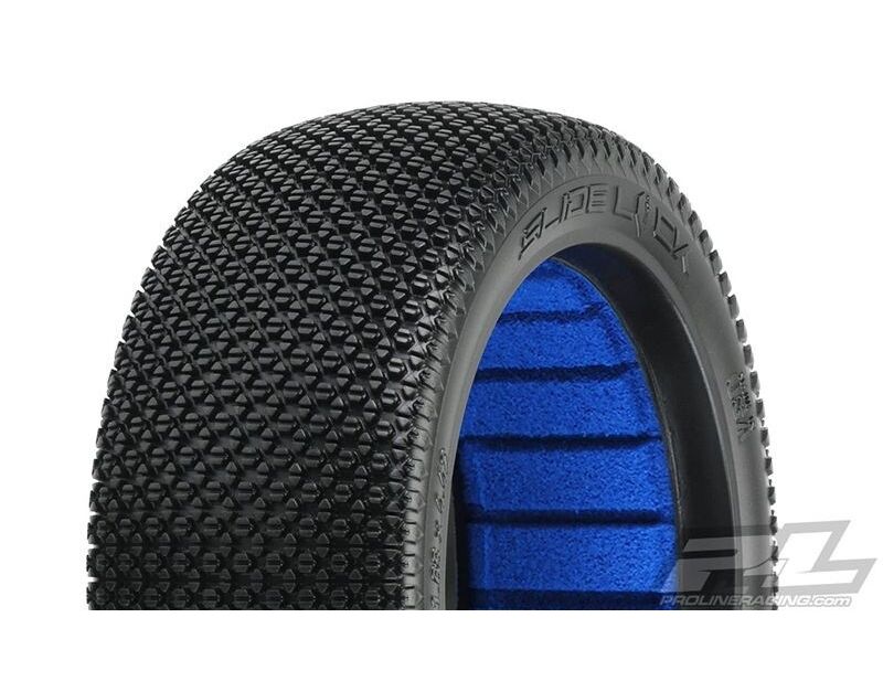 This is a pair of Slide Lock 1:8 Buggy Tires. The Slide Lock is a unique new tire design from Pro-Line that is made specifically for smooth, low grip tracks. The Slide Lock features a pattern of small, tightly packed hexagon and triangle shaped pins so you can lay down as much rubber as possible. The tread on the new Slide Lock is laid out wider across the tire carcass for a flatter profile overall compared to other Pro-Line 1:8 Race Tires. Each hexagon pin has a deep sipe down the middle of the tread for added flex and grip on even the slickest of surfaces. The built-in tread flex means you can run harder compounds for longer wear and still have good traction when you need it. The large and stiff side pins reach far down the sidewall to reduce edginess as much as possible. Be the first at your track to win with Pro-Line's new Slide Lock tire. Get yours today!