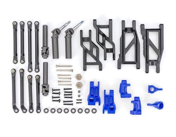 9180-BLUE Traxxas Extreme-HD Set 2WD Rustler / Stampede / BigFoot Blau Einfach zu installieren Dieses Rundum-Sorglos-Paket enthält alles, was Sie für die Umgestaltung Ihres Lkw benötigen. Da es als Komplettpaket konzipiert ist, passt alles mit perfekter Präzision zusammen. Dieses Kit enthält Sechskant-Hardware und funktioniert mit bereits vorhandenem Aluminium-Zubehör. Extreme HD-AntriebswellenExtreme HD-Antriebswellen Die leistungsstarken Extreme Heavy Duty-Antriebswellen haben einen größeren Durchmesser als die Standard-Antriebswellen und verfügen über verstärkte U-Gelenke, die für die mühelose Nutzung von Brushless-Power ausgelegt sind. Die teleskopierbaren Wellen bieten eine hervorragende Aufhängungsanpassung für hervorragende Stoßdämpfung und engere Kurvenfahrten. Heavy Duty QuerlenkerHeavy Duty Querlenker Geformt aus unserem härtesten Verbundwerkstoff, bieten diese hochbelastbaren vorderen und hinteren Querlenker genau das richtige Maß an Flexibilität, um