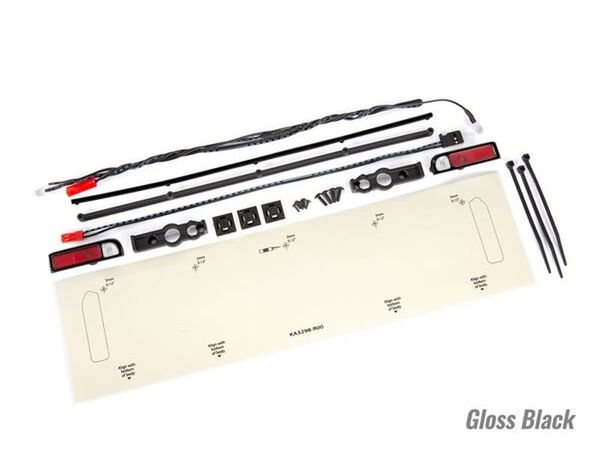 LED lights, tail lights (red)/ power harness/ tail light housings (left & right)/ tailgate trim (black)/ zip ties (3)